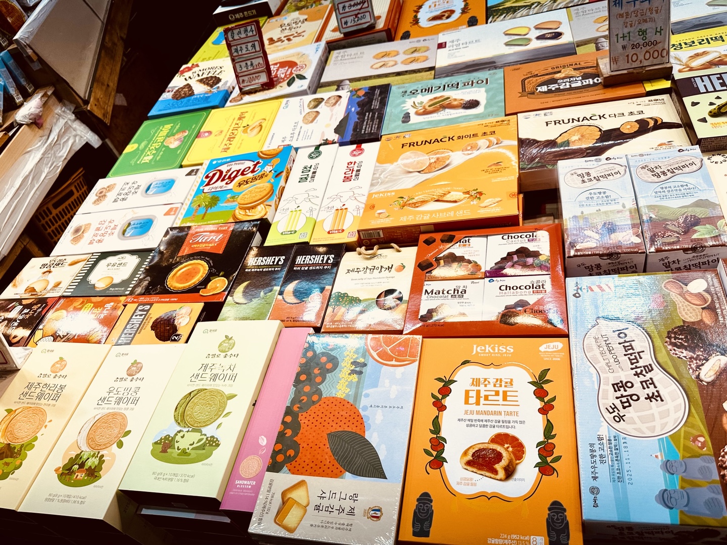 그리고 제주 동문시장엔 제주 특산물 간식이 정말 많아요! 예전부터 있었던 한라봉맛, 백련초맛 초코크런치 과자부터 다양한 과자들이 있어서 모두 사먹고 싶을 정도였어요 😍