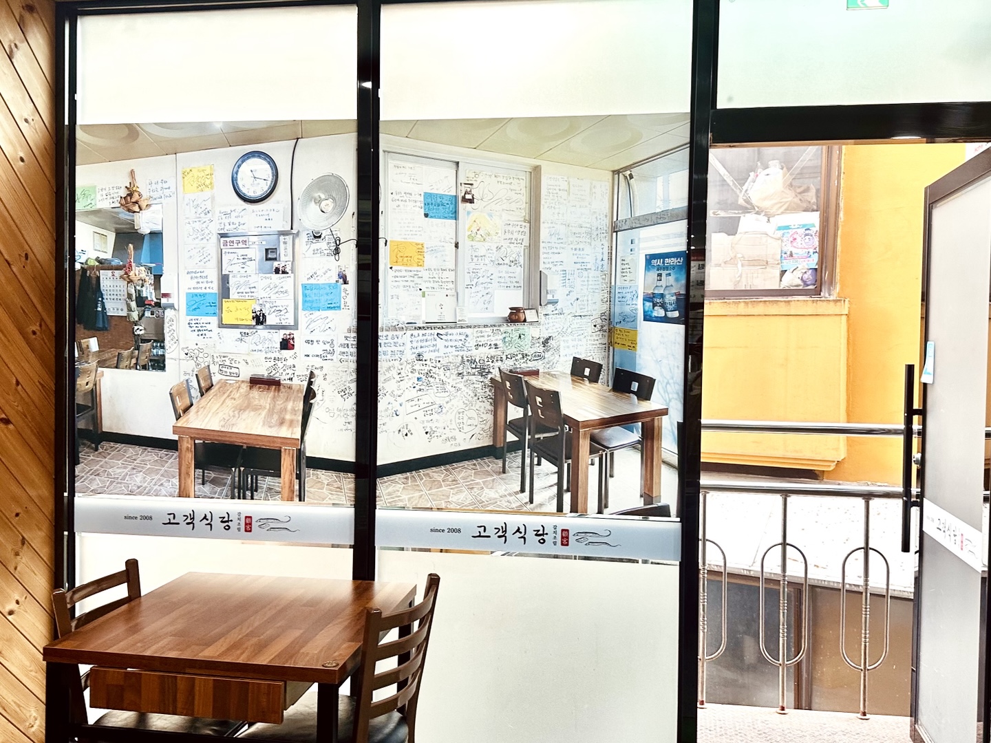고객식당은 원래도 제주 토박이들 사이에서 유명했지만, 수요미식회 방송 이후 더 많은 사랑을 받으며 2020년에 확장 이전했다고 해요. 지금 매장은 넓고 깔끔해서 가족 단위 손님도 부담 없이 이용 가능해요. 벽면에는 예전 매장 시절 사진과 방문객 낙서, 사인이 남아 있어 그 역사와 인기를 느낄 수 있었어요. 특히 아이 동반 손님에게도 친절하고 편안한 분위기여서 좋았던거 같아요.